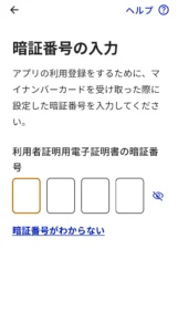 マイナンバーカードを作成した際に設定した暗証番号を入力します。