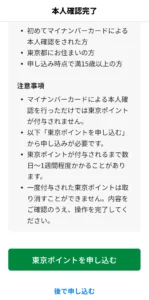 本人確認が完了したら、「東京ポイントを申し込む」を選択します。